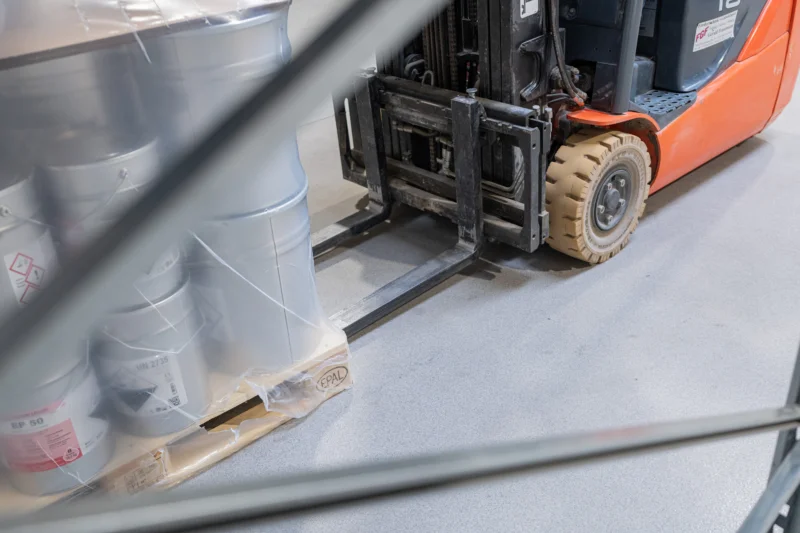 Unebenheiten und beschädigte Oberflächen führen zu erhöhten Vibrationen, körperlicher Belastung für Fahrpersonal sowie zu zusätzlicher Geräuschentwicklung. Verschleißarme, gleichmäßige Bodensysteme tragen dazu bei, Erschütterungen zu reduzieren, den Fahrkomfort zu verbessern und die akustische Belastung im Hallenbetrieb zu verringern.